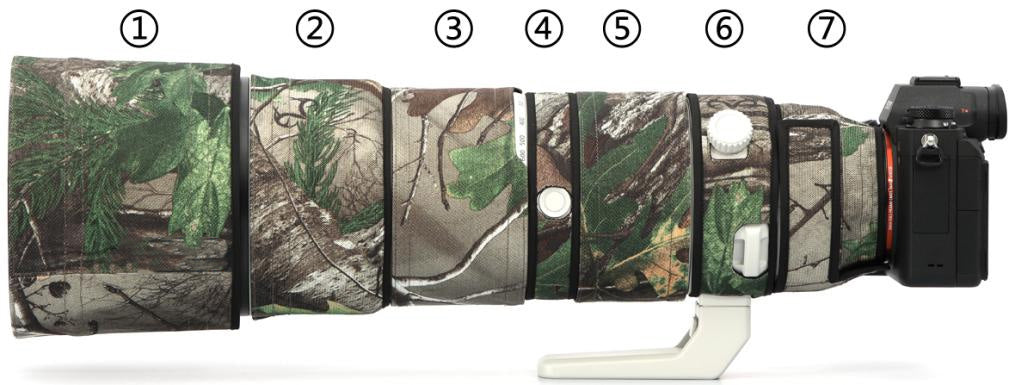 Wrap the tripod collar cover (Part ⑥) around the lens's tripod collar. Center it without interfering with collar rotation.